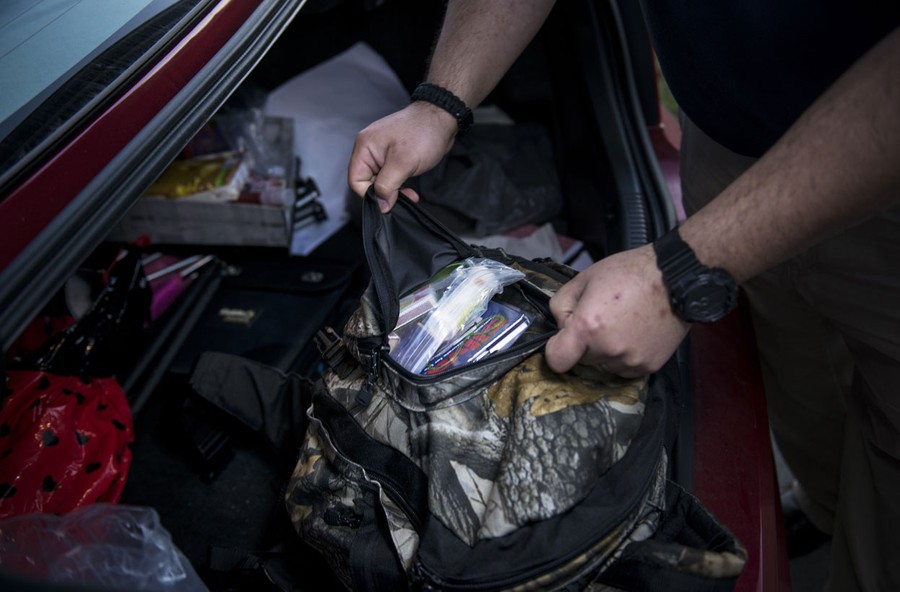 Read moreJay Blevins shows a "get home" bag, a bag with supplies to get home from his work on foot if necessary, he keeps in his car December 5, 2012 in Berryville, Virginia. #