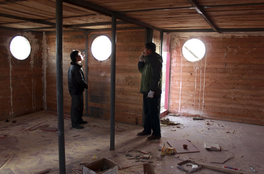 Read moreLu Zhenghai, right, stands inside his ark-like vessel in China's Xinjiang Uyghur Autonomous Region, on November 24, 2012. Zhenghai spent his life savings building the 70-foot-by-50-foot vessel preparing for a catastrophic flood, according to state media. #