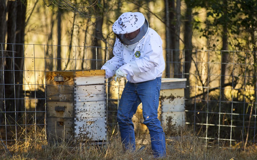 Read moreJeff Nice tends to his honey bees on his farm in Kinston, North Carolina, on December 14, 2012. Preppers Jeff and Jeanie Nice live on a 13 acre farm where they raise beef, chicken, turkey and can vegetables from their garden. #