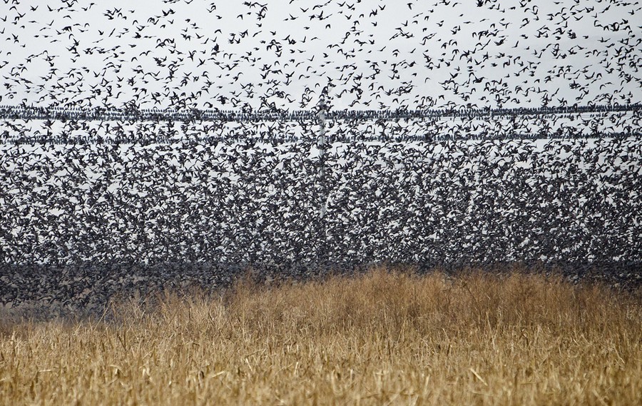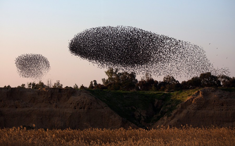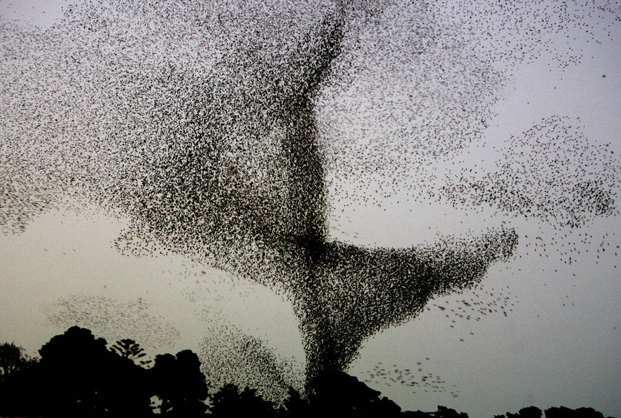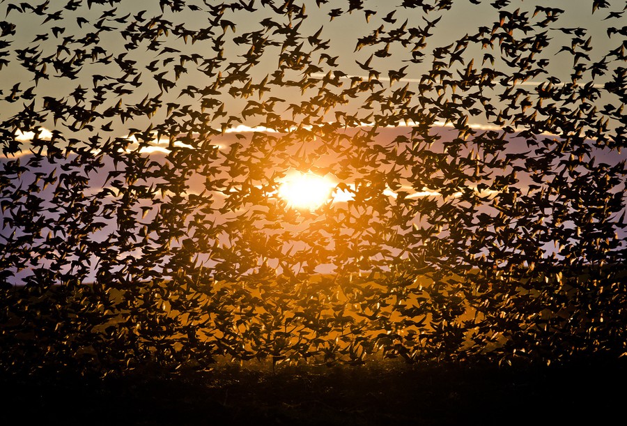 When starlings flock together, wheeling and darting through the sky in tight, fluid formations, we call it a murmuration. These murmurations can range from small groups of a few hundred starlings in a small ball, to undulating seas of millions of birds, blocking out the sun. I thought today would be a good day to just take a few moments and appreciate the simple beauty of murmurations, captured by various photographers over the past few years.