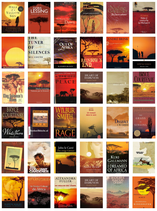 Last week, Africa Is a Country, a blog that documents and skewers Western misconceptions of Africa, ran a fascinating story about book design. It posted a collage of 36 covers of books that were either set in Africa or written by African writers. The texts of the books were as diverse as the geography they covered: Nigeria, Zimbabwe, South Africa, Botswana, Zambia, Mozambique. They were written in wildly divergent styles, by writers that included several Nobel Prize winners. Yet all of books' covers featured an acacia tree, an orange sunset over the veld, or both.