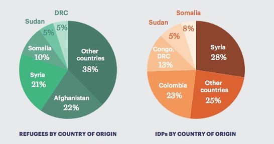 Somewhat more surprising, given the comparative lack of attention, was the share of IDPs in Colombia, where people have been forced to move due to the government’s battle with the leftist Revolutionary Armed Forces of Colombia, or FARC.