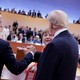French President Emmanuel Macron, German Chancellor Angela Merkel and U.S. President Trump talk with one another.