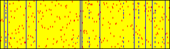 Epstein's model of ethnic tension: agents who have turned red kill one neighbor of the other color.