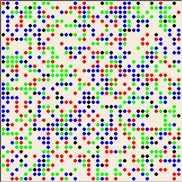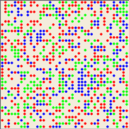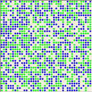 Schelling's model of self-segregation: agents seeking only one neighbor of their own color.