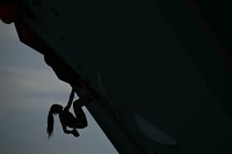 British sport climber Molly Thompson-Smith hangs on by her fingertips.