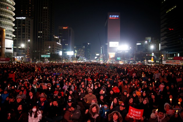 South Korean legislators introduced a resolution to impeach beleaguered President Park Geun-Hye on Saturday as hundreds of thousands of demonstrators filled Seoul for the sixth consecutive weekend to demand her resignation. Park’s administration has been crippled by a widening corruption scandal surrounding her closest advisors. All three opposition parties backed the impeachment motion, which drew the support of 171 out of 300 lawmakers in the country’s legislature. Legislators will consider the motion on Friday. Protest organizers estimated that 1.7 million demonstrators attended Saturday’s rally in the South Korean capital, which would make it the largest mass protest in South Korea’s history; official sources reported about 500,000 people in attendance.