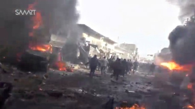 A truck bomb exploded Saturday in a packed marketplace in Azaz, a rebel-held Syrian town on the Turkish border, killing nearly 50 people and wounding dozens more. The Washington Post reported that six of the dead were rebel soldiers and the rest were civilians. Locals told media outlets that the blast came from a fuel truck but did not offer further details. According to the Associated Press, the explosion reportedly destroyed or heavily damaged several nearby buildings, sparking ongoing search-and-rescue operations in the rubble. The attack comes amid a Russian-brokered ceasefire in the six-year civil war that has devastated most of Syria. No groups have yet claimed responsibility.