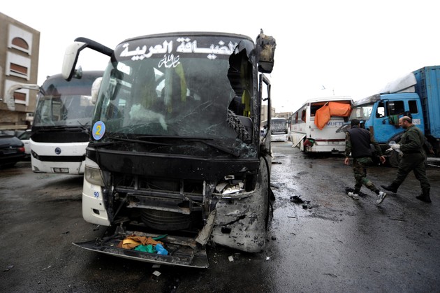 The death toll from two explosions in Damascus has risen to 74, according to the Syrian Observatory for Human Rights. More than 40 of the victims from the blast Saturday were Iraqi Shiite pilgrims who had come to Syria’s capital to visit holy shrines. The other victims were mainly Syrian state security workers, as well as some bystanders, including children. When the first blast erupted, the travelers were at a bus station near the Bab el-Saghir cemetery, just south of the Old City. Then about 10 minutes later, as people had rushed to tend to the injured, another bomb exploded. Images from the scene showed several buses with their windows blown out, and shoes and clothes scattered on the street. On Sunday, the Associated Press reported that a terrorist group linked to al-Qaeda, called the Levant Liberation Committee, claimed responsibility for the attack, saying their two suicide bombers targeted pro-Iranian and pro-Syrian government supporters.