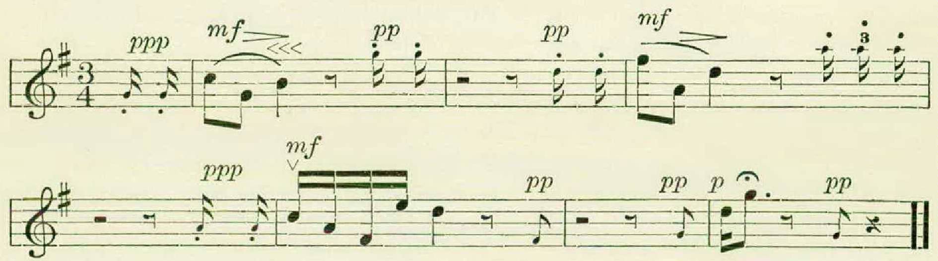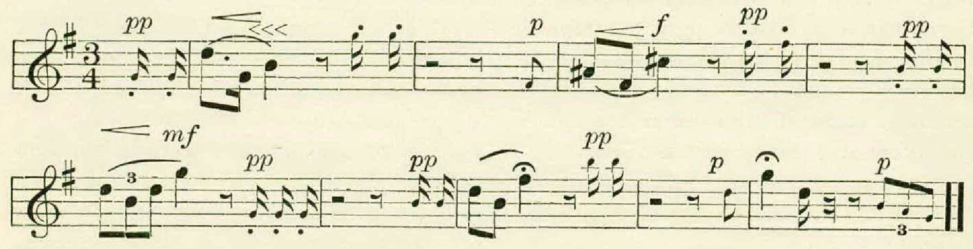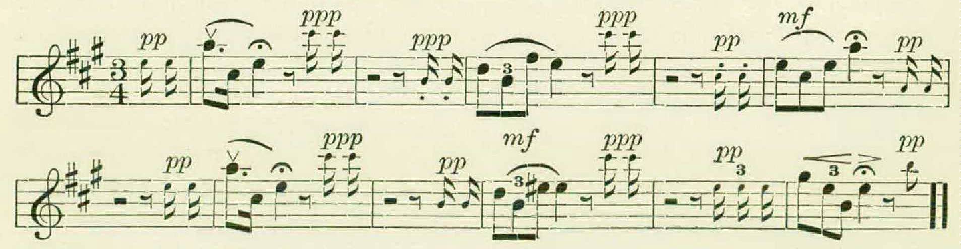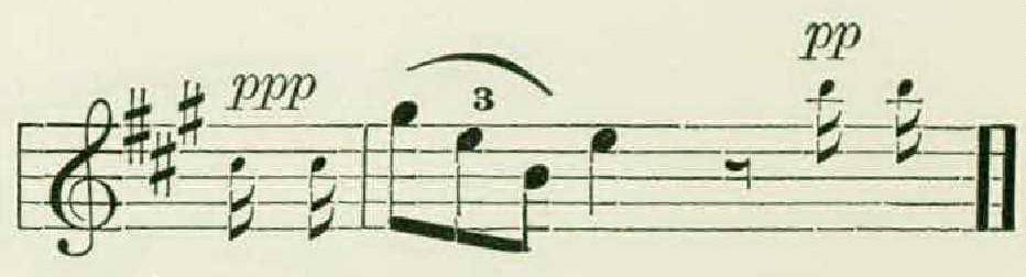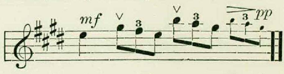 Then, after the usual pause, would break out a phrase an octave higher, in a thin, metallic utterance, contrasting sharply with the preceding one, and by its change in timbre suggesting a jump of two octaves rather than one.