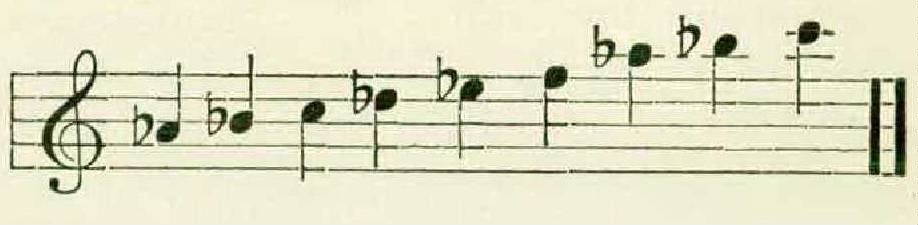 Assuming that such was the case, it followed that each phrase was in a key of its own, which was determined generally by the opening note; and from a mass of observations the fact soon appeared that the opening notes of these phrases formed part of a definite scale. A certain bird, for instance, as in the case to be noted below, had nine phrases, and these were always in the following keys:—