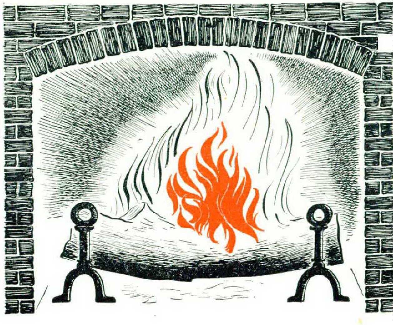 And here, in the little old story-and-a-half gambrel-roofed building, I am convinced it was the pure spirit of the fire — full-bellied and roaring in winter, a mere glow of embers in summer, but ever alive in the fireplace — that gave the inexplicably rich colors and shadings to the many facets Uncle exposed to it while he carried on his daily work of wood carving. If he were within, there on the hearth would be a fire appropriate to the weather outside, although on blazing days of July and August, as during his absences, it would be found banked with ashes, a thread of smoke spiraling up the black throat signifying its ever-readiness to spring to life again. So carefully did Uncle tend and nourish this flame in “The Shop” that one came to feel that perhaps he was a votary of Vesta, or some older goddess of the hearth from the Far North.