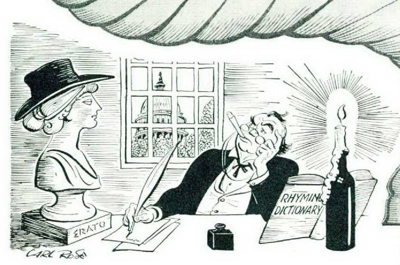 Congressmen, whatever their aesthetic blind spots, have passionate convictions about the uses and beauties of poetry; to them poetry is not, as it is to so many of us, an empty hodge-podge of words about larks, long-winded Greeks, and plowmen breaking the stubborn glebe. They regard it as a tool of their profession and even the prosiest orator breaks his oration every now and then, coats his tongue with honey or with fire as the case may be, and lets fly — “as the poet said.” This does something to popularize poetry among their still rude constituents and bears out their contention that it has practical angles.