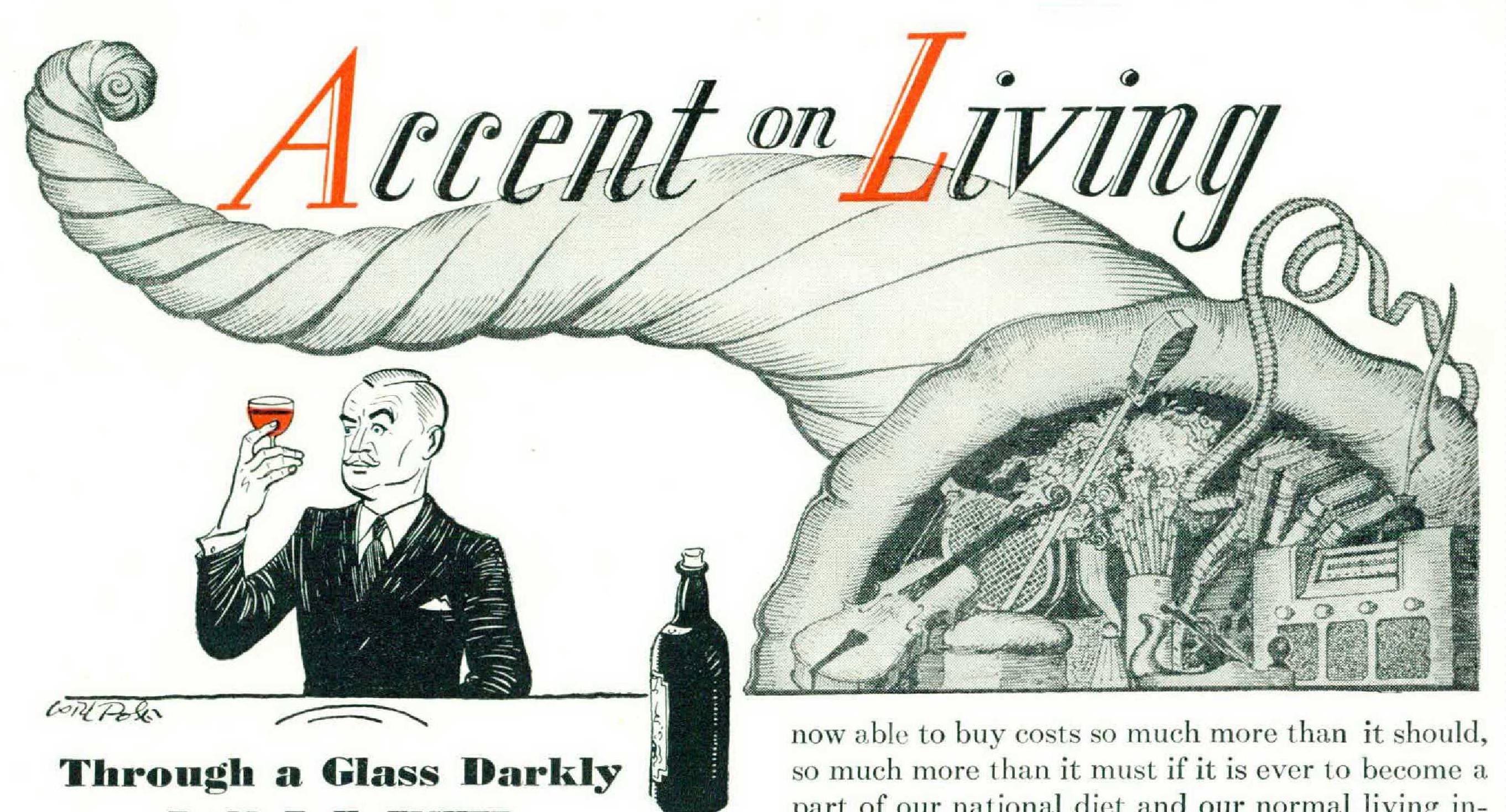 This policy, farsighted and probably good, reduces most merchants to a state of helpless exasperation: they turn away hundreds of customers with the somewhat comfortless assurance that at least they can satisfy ten or fifteen. And for every fifteen, several dozen more, no matter how thirsty, remember from the skillful national advertising on the air and in the magazines that this or that wine, such and such a sherry or brandy, is the one to ask for when the war is over.