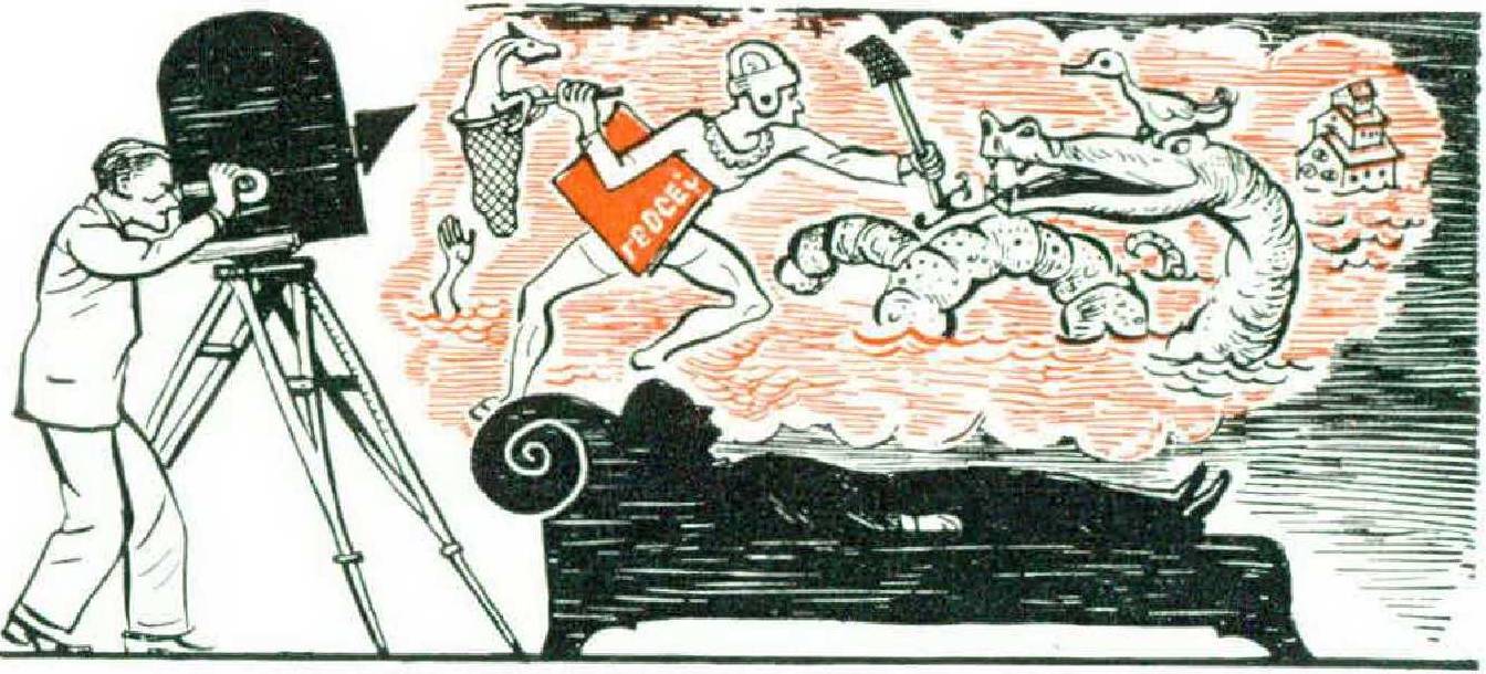 Yet, before the motion pictures took over the entire bazaar of the mind, all this poor man complained about was lower-plate wobble. If he dreamed at all it was wholesomely, of Jeanie with the light-brown hair. While film stood at the psychical threshold, an amnesia victim was about as complicated a figure as it dared to handle.