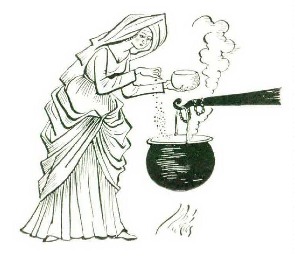 Dill was said to weaken the eyes, so it was fortunate that fennel could restore the sight. Coriander was believed to bring on hallucinations, anise to cure epilepsy, and sesame seeds to end “soundings and ringings of the eares.” Mustard loosened the longue, and cumin was supposed to be a potent aphrodisiac, which perhaps accounted for its tremendous popularity. A brew of it when “drunk twice a day doth multiply and provoke lust.” In “The Vertues of Several Waters” mentioned by Gervase Markham (1615), it is stated positively that “water of fennel is goode to make a fat body small”; and one of “six most precious waters which Hippocrates made and sent to a Queen sometimes living in England" contained fennel along with numerous other ingredients, all to be kept in a vessel of gold or silver. The water, when drunk, “caseth the ach of the head, and if a man drink it, it maketh him look young even on old age, besides a world of other most excellent vertues.”