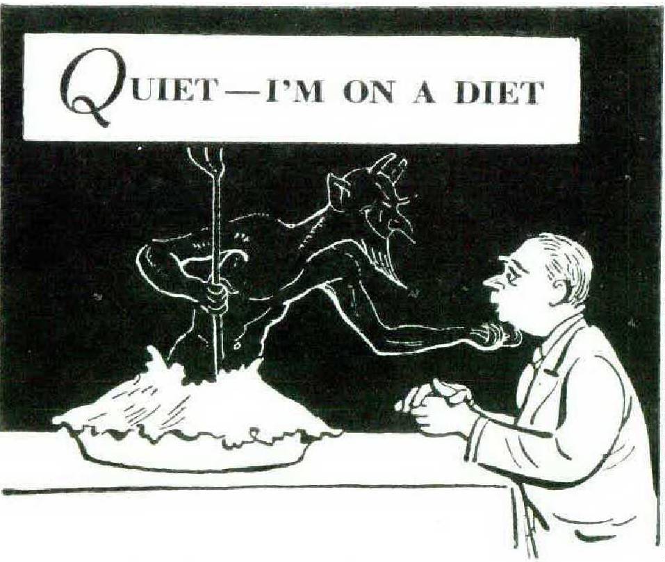 The last, time I went through this ordeal, I resolved that it would indeed be the last time. So when my wife began her annual agitation about my waistline recently, I made no protest about going on a diet. On the first night of the regime, she served broccoli as the diet specified. I gobbled it down, along with the hollandaise sauce she had thoughtfully improvised. I drank the cocoa she served when she decided I must be getting tired of skimmed milk. I ate the chocolates the kids shoved into my mouth; and when Aunt Edith sent candied fruit, I loaded up on it.
