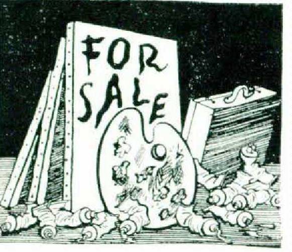 The trouble with a hobby is that either it becomes so relaxing I fall asleep over it (button collecting, basket weaving), or it makes me nervous (model building, soap sculpture). Or it makes people around me nervous (Swiss bell ringing, pyrography, and now — painting in oils). For it is chiefly at the urging of others that I am closing down and offering the following canvases for sale or for free:—