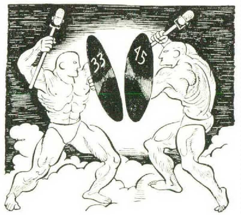 Until Brigadier General David Sarnoff of RCA writes his memoirs, it won’t be known whether the little records with the odd speed and the big spindle-hole would ever have come into being without this challenge to RCA Victor, which had long held and highly valued its dominance in the American record market. Anyway, once the huge company was committed it poured vast sums into the campaign, and marketed large numbers of 45 rpm recordplayer “attachments.” For a while, the future of the 33 1/3 rpm LP seemed far from secure.