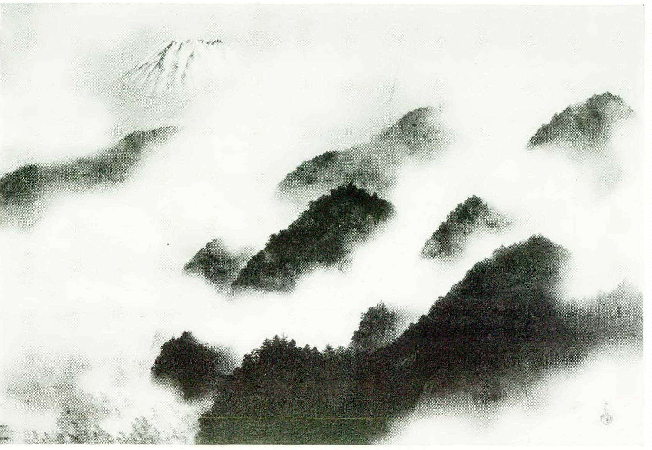 The venerable Taikan Yokoyama (whose portrait sketched by Sotaro Yasui we see in Plate 6) is one of the immortals of contemporary Japanese art. He has idealized the sacred mountain, Fujiyama, in scores of different moods and perspectives. With astonishing virtuosity he has combined water color and ink in a personal technique which permits him in one painting to please the many with a scene of romantic beauty and the few with an abstract patterning of space and volume. From Hayami’s cherry flowers to Yokoyama’s Mt. Fuji After Rain (Plate 3), we have moved from the minute to the monumental, yet both are examples of subjective naturalism. Dr. Yamada explains it thus: “Japanese art of the past was based on the typical Japanese attitude of perceiving the outer world not in opposition to the self, but regarding the self as part of the universe. The world was apprehended intuitively. This attitude did not foster empirical natural science in our history but created art of unique beauty — an art with no conflict between image and perception, an art of complete empathy and at the same time of abstraction.” For the Japanese public today Yokoyama’s work is a reassuring link with the past.