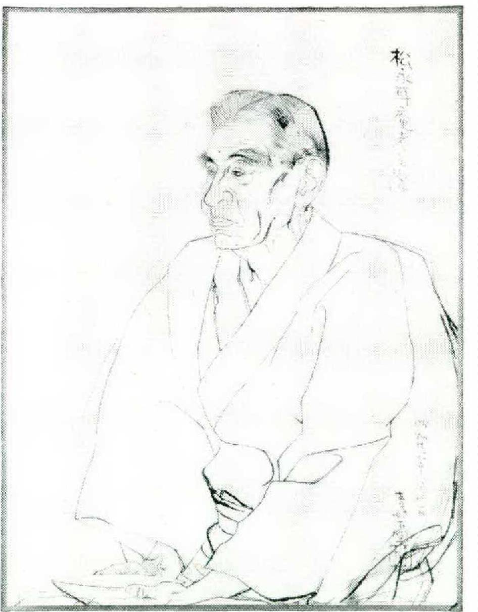 Japanese portraiture has a long and rich tradition which goes back to the art of China and Korea. One of the best “Japanese style” portrait painters today is Seison Maeda, born in 1885, who has also done some remarkable scroll paintings in the old Yamato-e style. His subject in the expressive character study we reproduce, Mr. Yasuzaemon Matsunaga, is a retired industrialist. Plate 8 shows the completed portrait and Plate 9 is the final preliminary sketch for it.