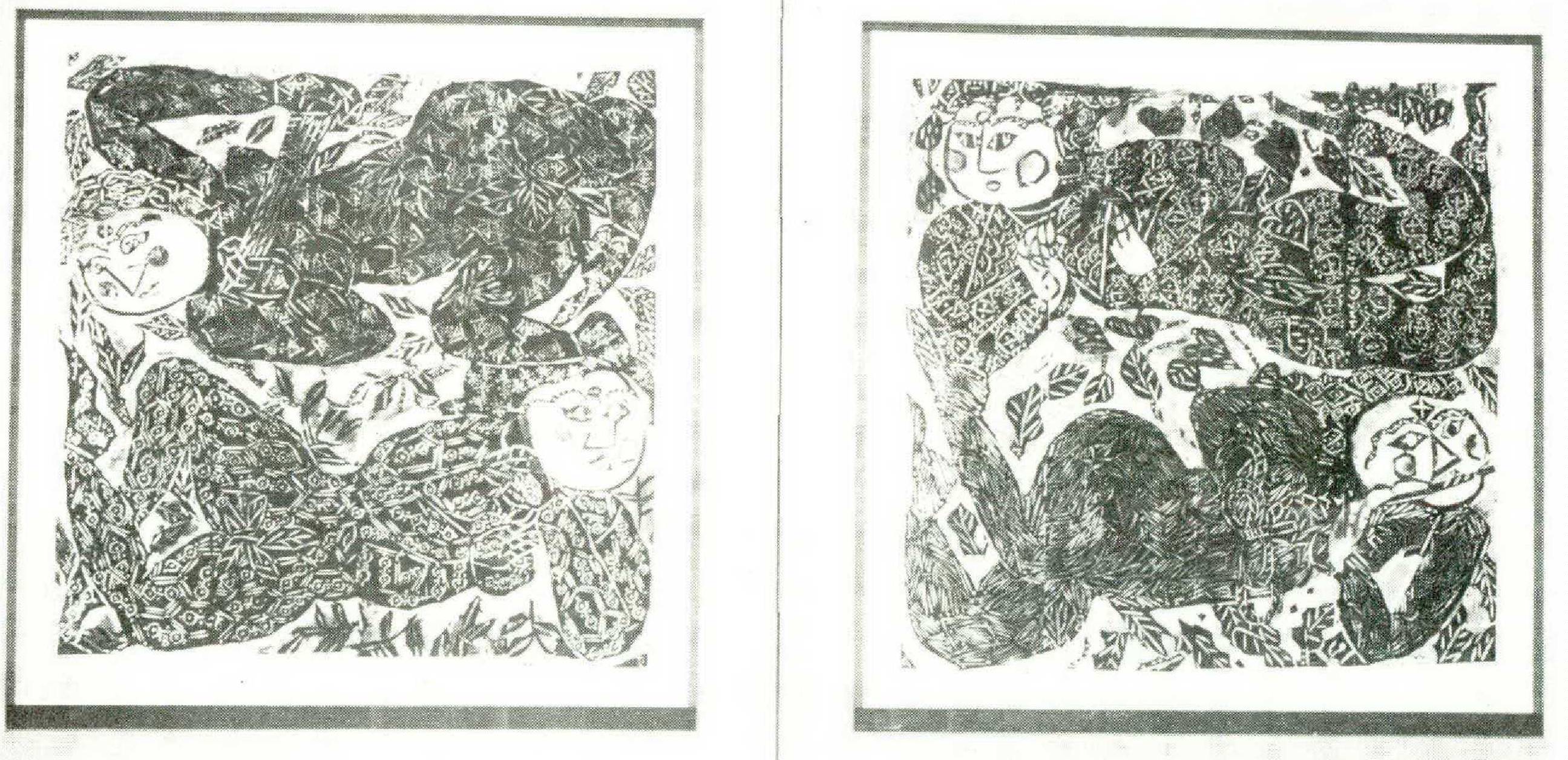 As Nyozekan Hasegawa tells us in his essay, Ukiyo-e prints and picture books were produced in enormous quantity, becoming an important medium of popular education. They were so cheap and plentiful that exporters used old ones to wrap products sent for sale in Europe. Thus they were discovered by 19th-century Impressionist painters in France who sent for more, starting a vogue which strongly influenced modern Western painting. As we shall see, the most interesting contemporary work in wood block has taken other directions, but the Ukiyo-e tradition survives vigorously today in the work of painters such as Kiyokata kaburagi, who blends it with a touch of Western realism. His Grass of Summer (Plate 7) portrays a young girl dressed in dance costume: flowered summer kimono, an obi sash, flowers in a raised coiffure, and the fan used for gesturing in dance.