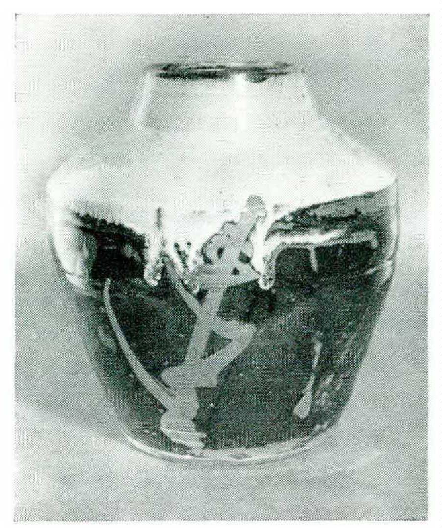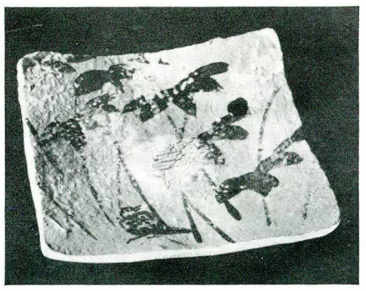 Mr. Morita has more to tell us about the Tea Ceremony in his essay on architecture. For this ritual a Japanese always reserves his most precious ware. Usually the tea bowls will be heirlooms, but remarkably beautiful pottery is being produced today in the kilns of Japan for those who need new pieces. The work of village craftsmen has received fresh inspiration from Soetsu Yanagi, Director of Tokyo’s Folk Art Museum, and artist-potters such as Kanjiro Kawai, Shoji Hamada and Rosanjin Kitaoji. Hamada’s vase (Plate 16) and Kitaoji’s Shino Ware plate (Plate 17) show how these men are blending in pottery traditional elements of calligraphy and decorative line with interesting glazes and a modern abstract sense of design.
