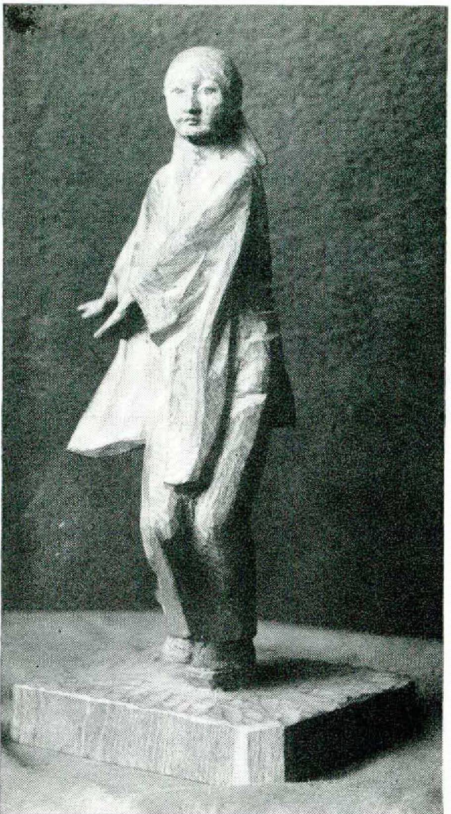 Among the greatest glories of Japanese classical art are the carved figures of the early period when Buddhism first flourished in Japan. But today, perhaps because the religious inspiration is less strong, or perhaps because there is little market for it among collectors, sculpture lags far behind painting both in quality and quantity. Some good work is being done in the field, however, and Tsuruzo Ishii’s wood carving of a Dancing Girl (Plate 19) is typical of the more traditional styles, while Sueo Kasagi’s Abstraction (Plate 20) reflects the modern Western influence on the younger sculptors.
