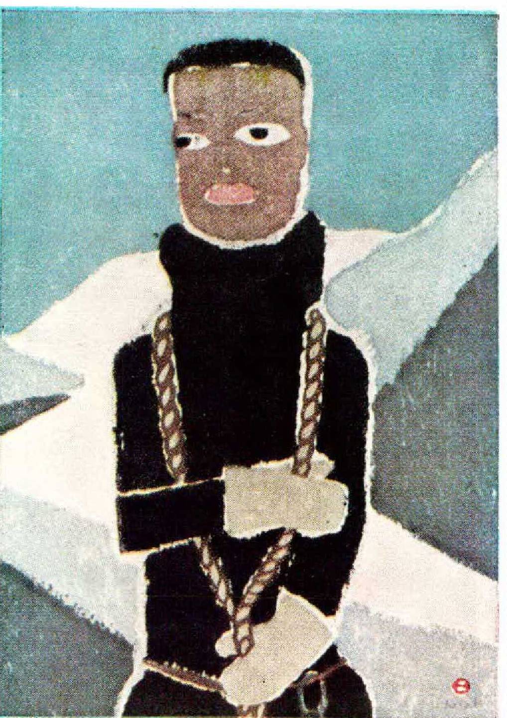 The early work of another print-maker, Kiyoshi Saito, born in 1907, suggests the influence of Vuillard, but his Red Flower (Plate 23) is typical of his more recent work which displays sure command of a highly individual idiom. Umetaro Azechi’s Mountain Climber (Plate 21), one of a series on Alpine subjects, gives us further proof of the vitality of the wood-block technique today.