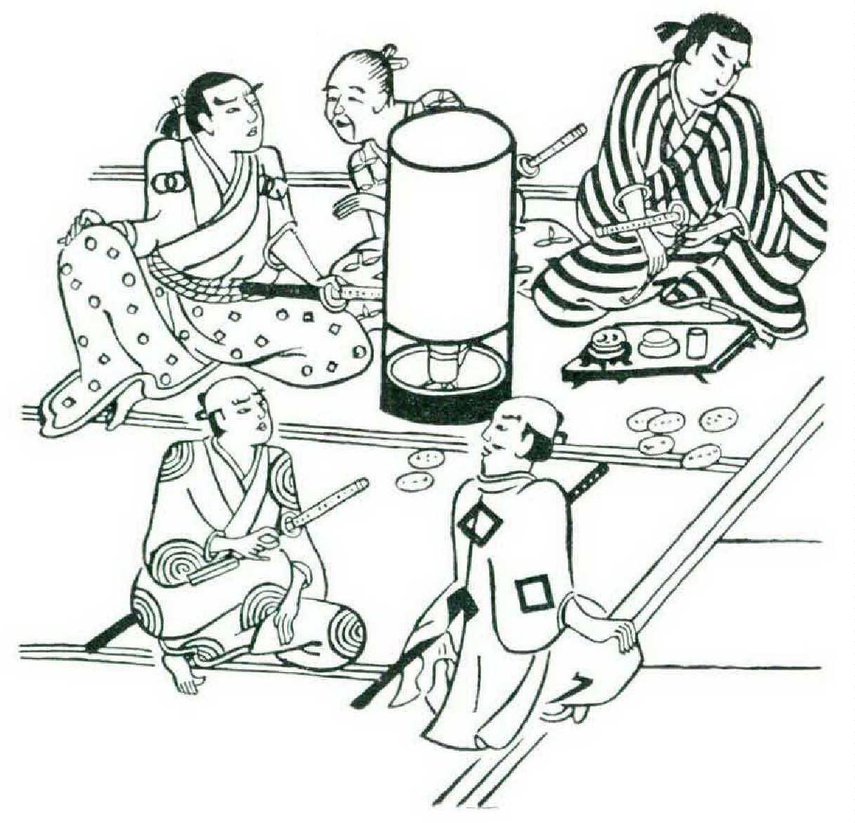 And he answered them, “As for the provenance of the coin, I obtained it yesterday for the sale of my fine and long-cherished Tokujo Goto poignard to the dealer Juzaemon for an ounce of gold. But, the situation being what it is, I accept my fate. Only this I request, from the friendship you have all borne me, that after I am gone you will search for the lost coin, and cleanse this humiliation from my body. I beseech you!” And without further ado, he put his hand to his sword. But just then someone shouted, “The money is here!” and pulled a coin forth from the shadow of an oil lamp.