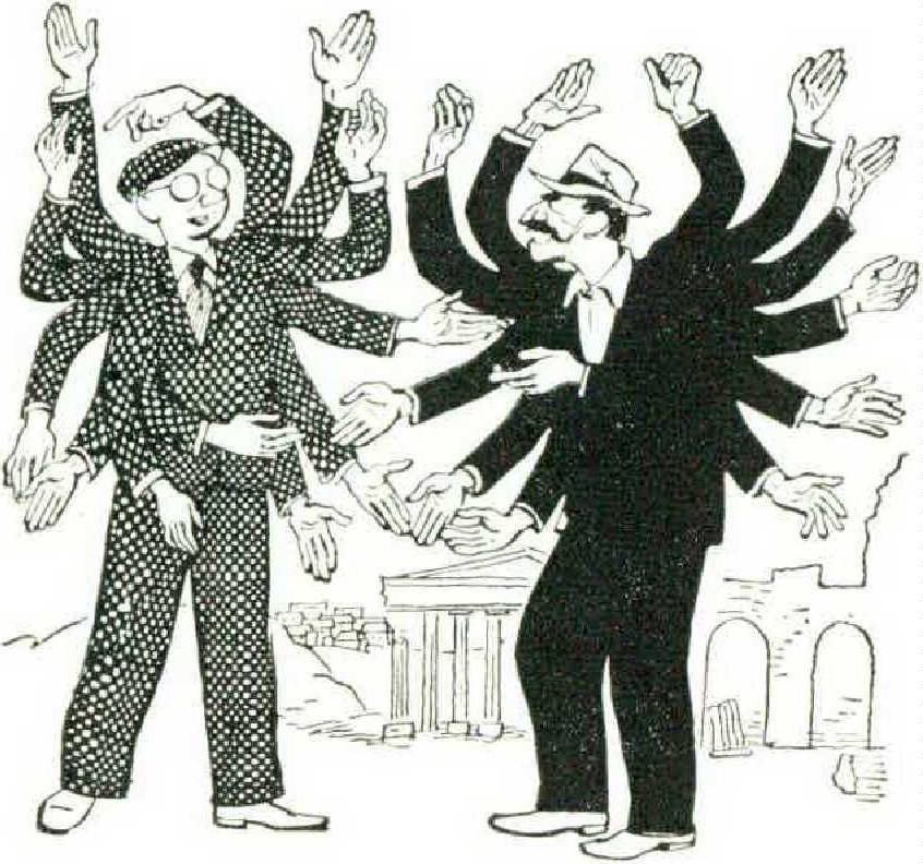 Italian is hardly a fair example, though, because it is so absurdly easy. Most of the time you need not talk at all, but can restrict yourself to gestures and ejaculations. But girls should beware of Italian men who offer to teach them the language, as words are soon liable to give way to gestures of unmistakable import, Gesture-language may be a restriction for foreigners, but for Italians it is quite the opposite.