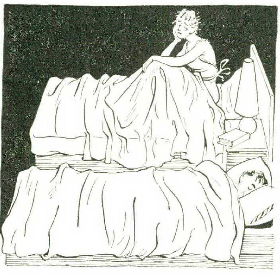 As a matter of fact, I have found that the negative side of this goingback-to-sleep business is quite as important as the positive. There are certain things you don’t dare think about. For instance, your husband. There he lies, happily unconscious beside you, the big peasant. It is only a short step from this to bitter reflections on the way he always disappears to wash his hands at the precise moment you put dinner on the table, and the way he — but perhaps you follow me. Undoubtedly the reverse of the coin is the same, though I can speak from only the wifely viewpoint.