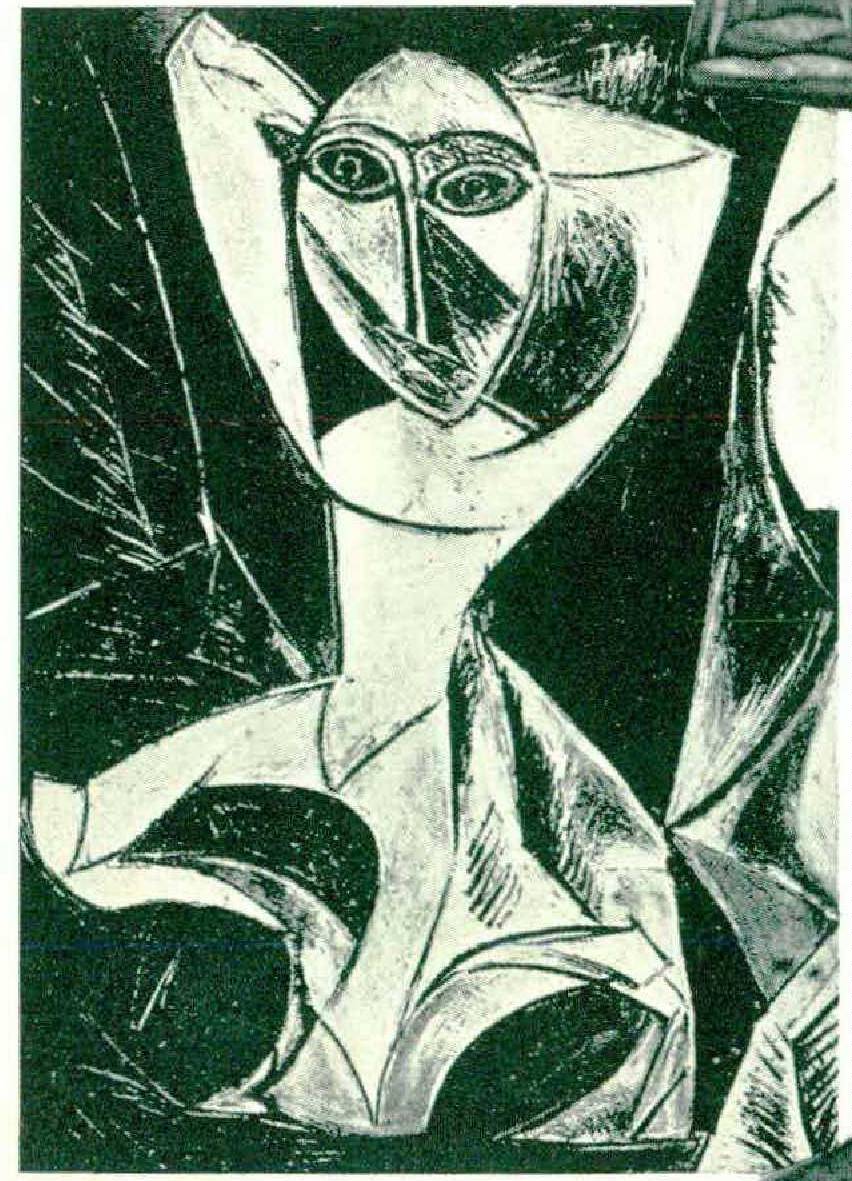 Wooden figures covered with brass, iron, and copper strips were placed on containers of ancestors’ skeletons in the French Congo. Note its striking resemblance to the Picasso canvas “The Dancer” (Figure 1), painted in 1907, when the artist was beginning his experiments in cubism.