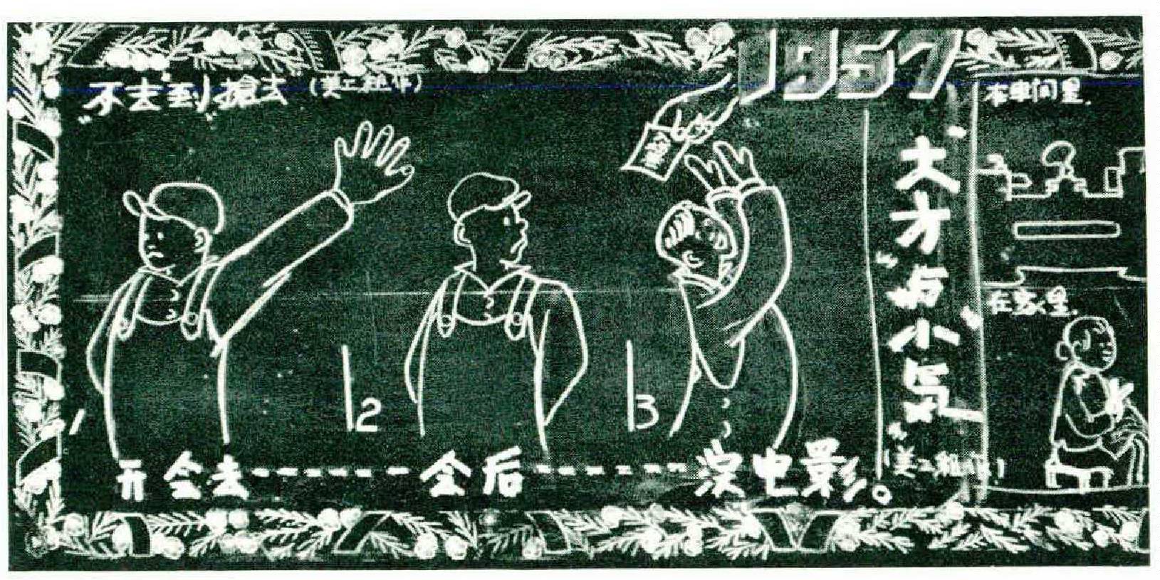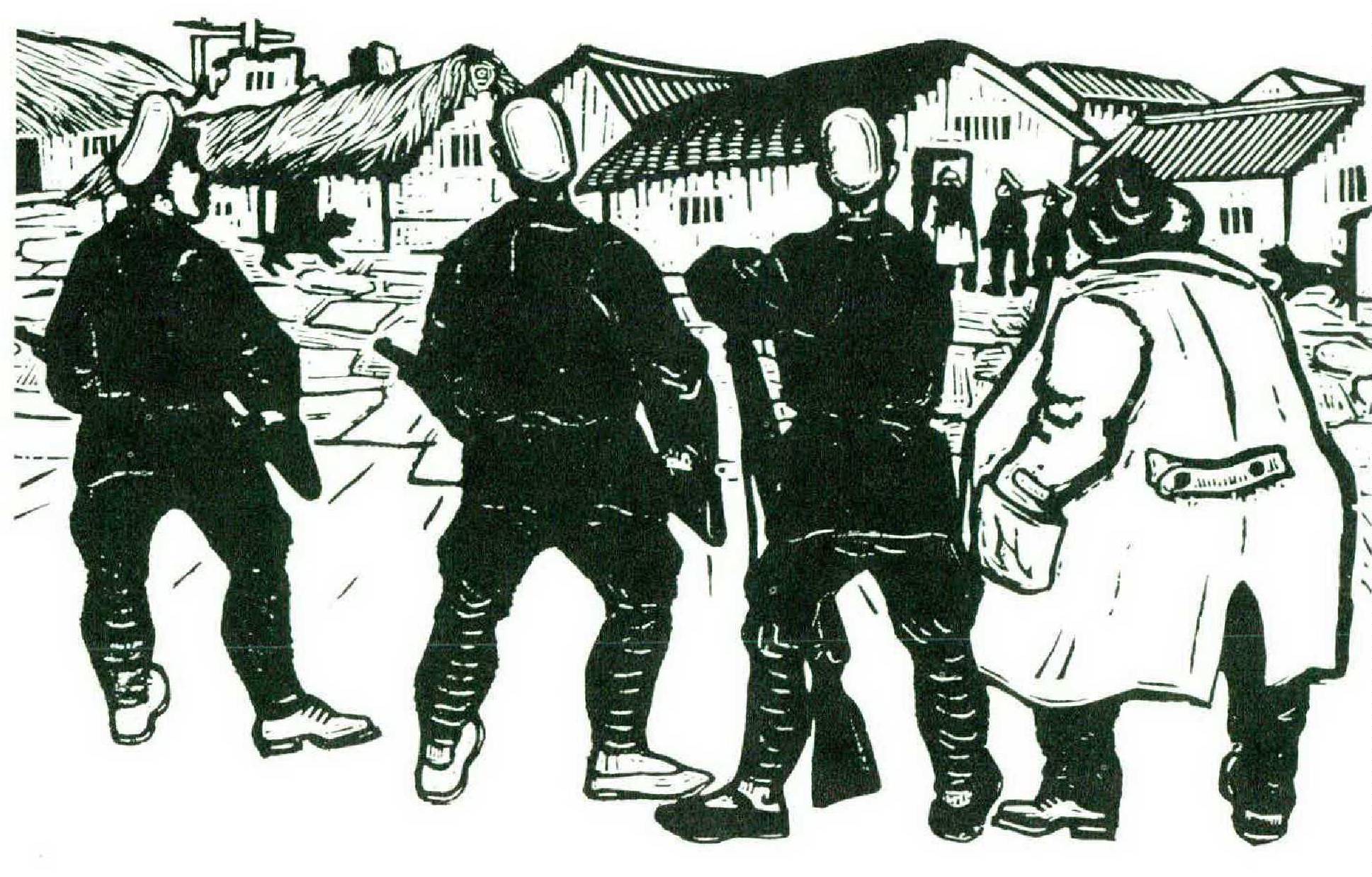The wood-block group, always largely Communist in sympathy, was adopted by the regime with little difficulty. It was only necessary to weed out a few deviates who had drifted into the movement for non-Marxist, humanitarian reasons. The survivors continued to whittle out brisk illustrations of true Communist action, exhortations to street cleaning and prompt attendance at the assembly line, and celebrations of the triumph of workers and peasants. Unfortunately, their work lost, in the warmth of success, much of the nervous strength it had shown in the cold days of adversity. Ornament and needless elaboration crept in, and a general softening of line.