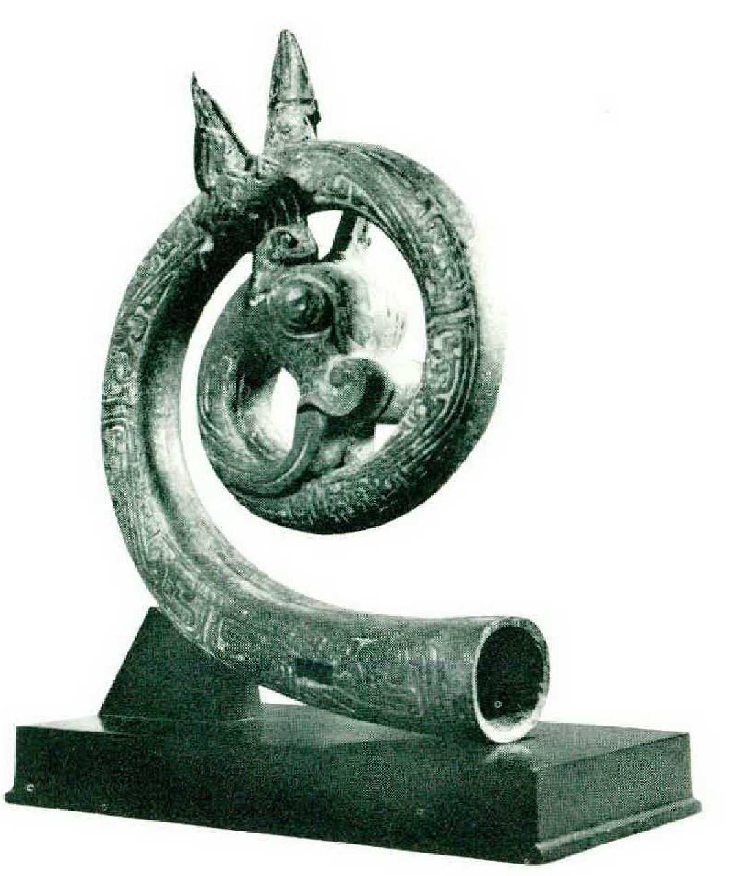 While contemporary painting and sculpture have been faced squarely toward Moscow by the Chinese authorities, interest in Chinese archaeology has been encouraged and practical measures taken to preserve and display what the Government describes as a treasure of the Chinese people. A real effort is being made to maintain the pride of the Chinese in their great artistic past and also to impress other nations with China’s attainments. As it happens, a great deal of material of historical interest has come to light through the Communist program of public works, for the digging involved in making highways, dams, and railroads has incidentally turned up many items of beauty and archaeological importance. These finds have been sorted and housed with such enthusiasm that the monthly report published by the Department of Cultural Affairs claimed, in November of 1958, that China is now the third country in the world in the number of its museums.