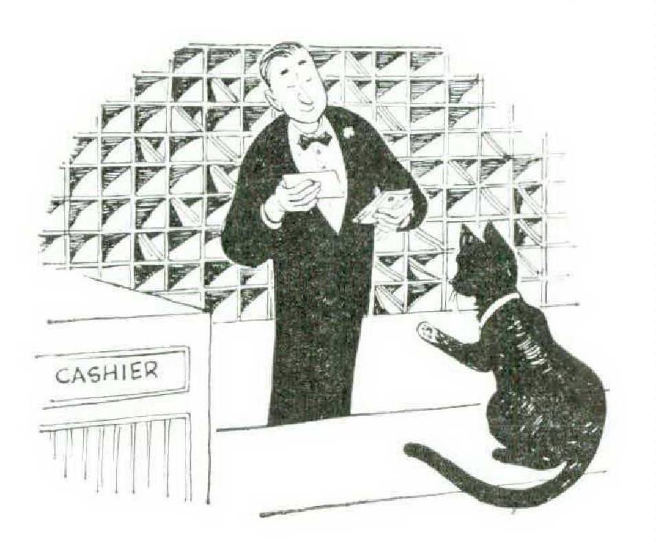 Before we left the patio, the hotel operator insisted on introducing me to a few of his more select guests, including one cat that he was especially proud to have staying with him. This cat, unlike Julius, had both a first and last name, and I shall call him Henry Adler, although this is not his real identity. Henry, I was informed, knew many movie stars and always spent his owners’ vacations at the cat hotel.