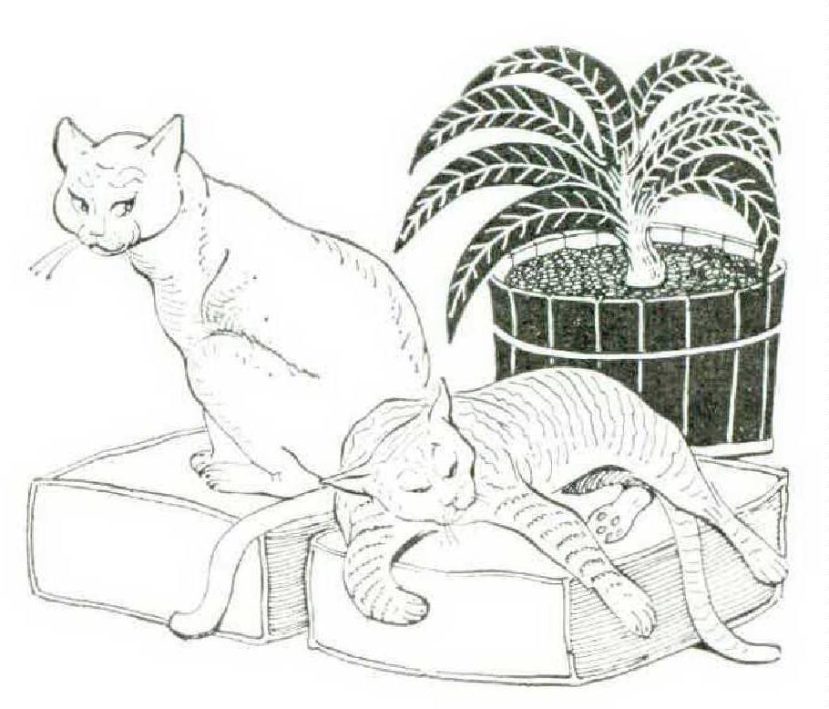 After paying for Julius’ room and board in advance, which seemed perfectly reasonable to me, I left the hotel grounds content in the knowledge that Julius was in the best of hands. For the next four months my wife and I traveled outside the country, only occasionally thinking of Julius but never doubting for a moment that the kid was being well cared for and was probably fairly happy. Once, in fact, while on a lovely Greek island, I did transmit greetings to Julius via another cat who regularly sat beneath my chair when we dined at a wharfside café. But, I must confess, this was our only contact with Julius during the entire trip, and I am not sure he got my message.