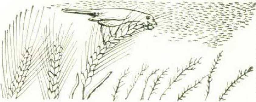 The red-billed weaver of the finch family is a very formidable invader. Flying in solid clouds three miles long and one mile wide, these devastating millions eat their way through wheat fields and leave them as barren as an ant army on the march would. Only two ways have been found to interrupt this grim migration—dynamiting the trees where they roost at night, and nocturnal sorties by aircraft spraying poison on these roosting spots.