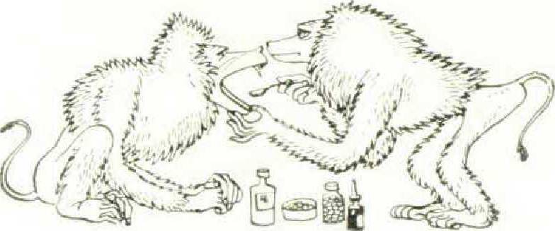 Baboons suffering from gastric ulcer, rheumatism, influenza, and malnutrition have taught medical men several effective remedies. During the 1918 flu epidemic, sick baboons were seen tottering from their mountain caves to burrow for wild garlic and gorge on it. When stricken farm families ate the same raw bulbs, they found both congestion and fever were relieved. The sight of rheumatic baboons stuffing themselves with willow leaves led Cape householders to brew a strong infusion of willow leaves, which they drink to alleviate rheumatic pains. These same willow leaves are the basis of one of today’s world-famous specifics for rheumatism.