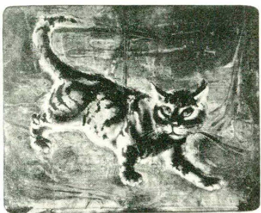 I held the opened can up to Boodles. As he leaned down to sniff, Doug grasped him. Boodles screamed like six lighting cats. He lashed in Doug’s grip so that I could not even see him; I only realized that the twelve-pound cat was hanging by all twenty nails from Doug’s hand and wrist. Doug slid and leaped down and ran inside holding the cat down from his eyes. We slammed the doors after us.
