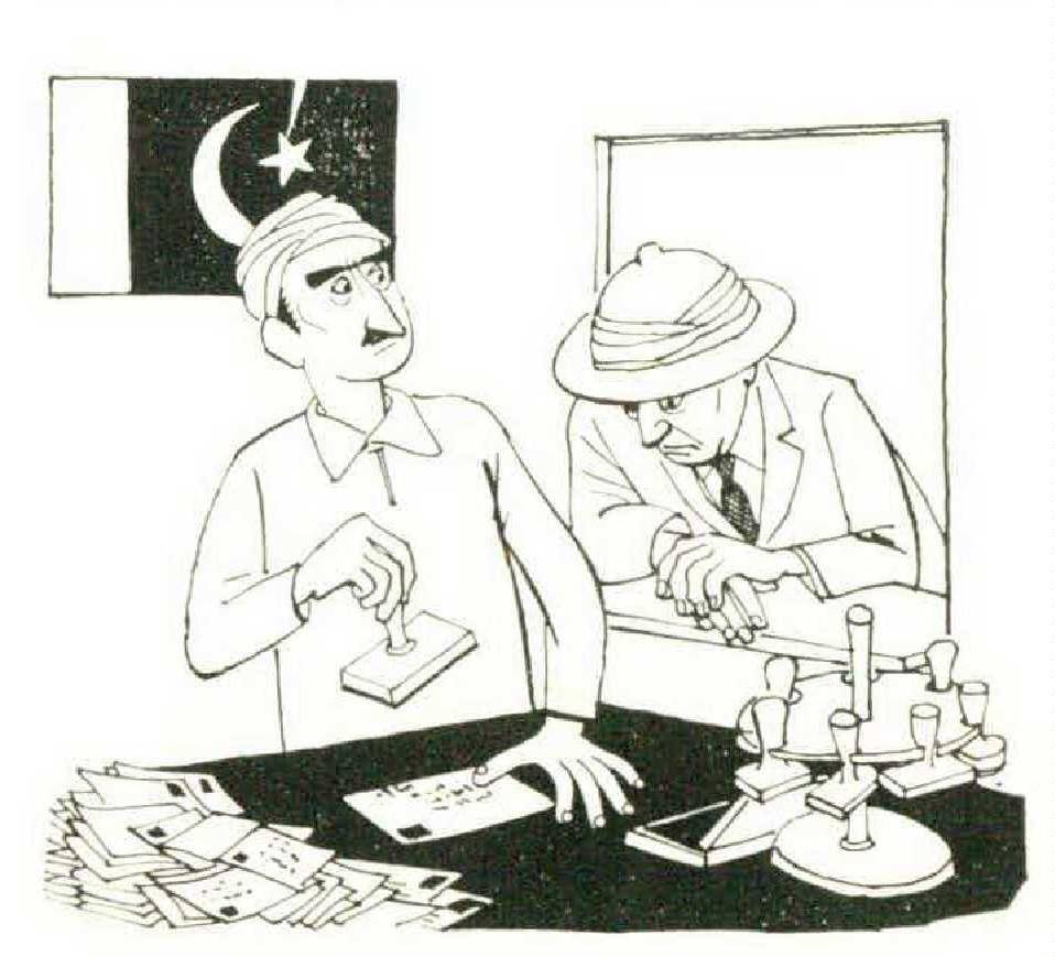 The plot was compounded whenever I had to make purchases of stamps or air letters, or do anything that involved a monetary transaction. Let me quote from the Ready Reckoner, put out by Pakistan’s Ministry of Finance to assist people in making swift calculations on the three currencies more or less in simultaneous use: “The exact equivalent should be worked out at the rate of 100 paisa to 1 rupee or 16 annas or 64 pice or 192 pies.” If I point out that “paisa,” “pice,” and “pies” are pronounced almost exactly alike, if I allude to the historical fact that a certain government official (now self-employed) caused coins to be stamped “pice” when they should have been stamped “paisa,” and if I add that there were then in circulation some twenty coins differing in size, shape, edging, and color, will it not be called a marvel that I tarried as little at the post office as I did? That, indeed, anything fiduciary ever happened?