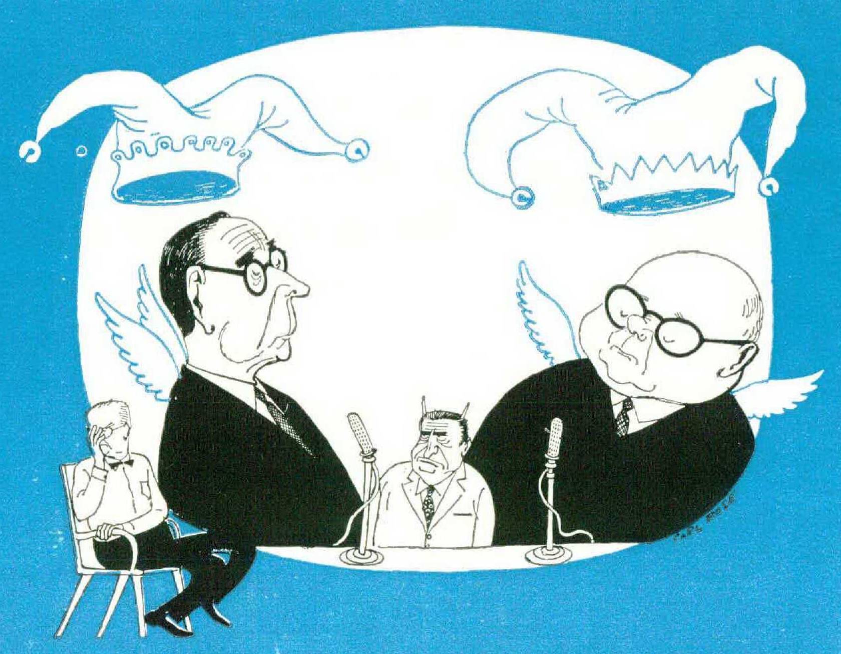 100 Grand: To watch the opening performance of this widely advertised new quiz show was like meeting a person who was unaware that he was suffering from an incurable and soon to be fatal disease. It was embarrassing in details as well as in the large. How, for instance, does the viewer respond when the quizmaster, or whatever he is supposed to be, begins by insisting that the show is absolutely on the level? To clinch it, each contestant signed a preposterous “affidavit” that no one else knew what questions he was about to ask his opponent — so there! Gone was the trusting trust company vice president who used to carry the questions from vault to studio in a little black bag, custodian, alas, after the fact. Gone were the usherettes in their fishnet tights, who once sealed off the contestant in his cue-proof cabinet, but only after too many cues had already been given and received. Gone too were the histrionics, the scowls of groping recollection, the grin of memory triumphant, hope, dismay, avarice writ large, etc., etc. What survived was the inane information on tap from people who knew more about one special subject or another than anyone could wish to hear. 100 Grand lived for only three performances, an embarrassment to all for every moment of its stay.