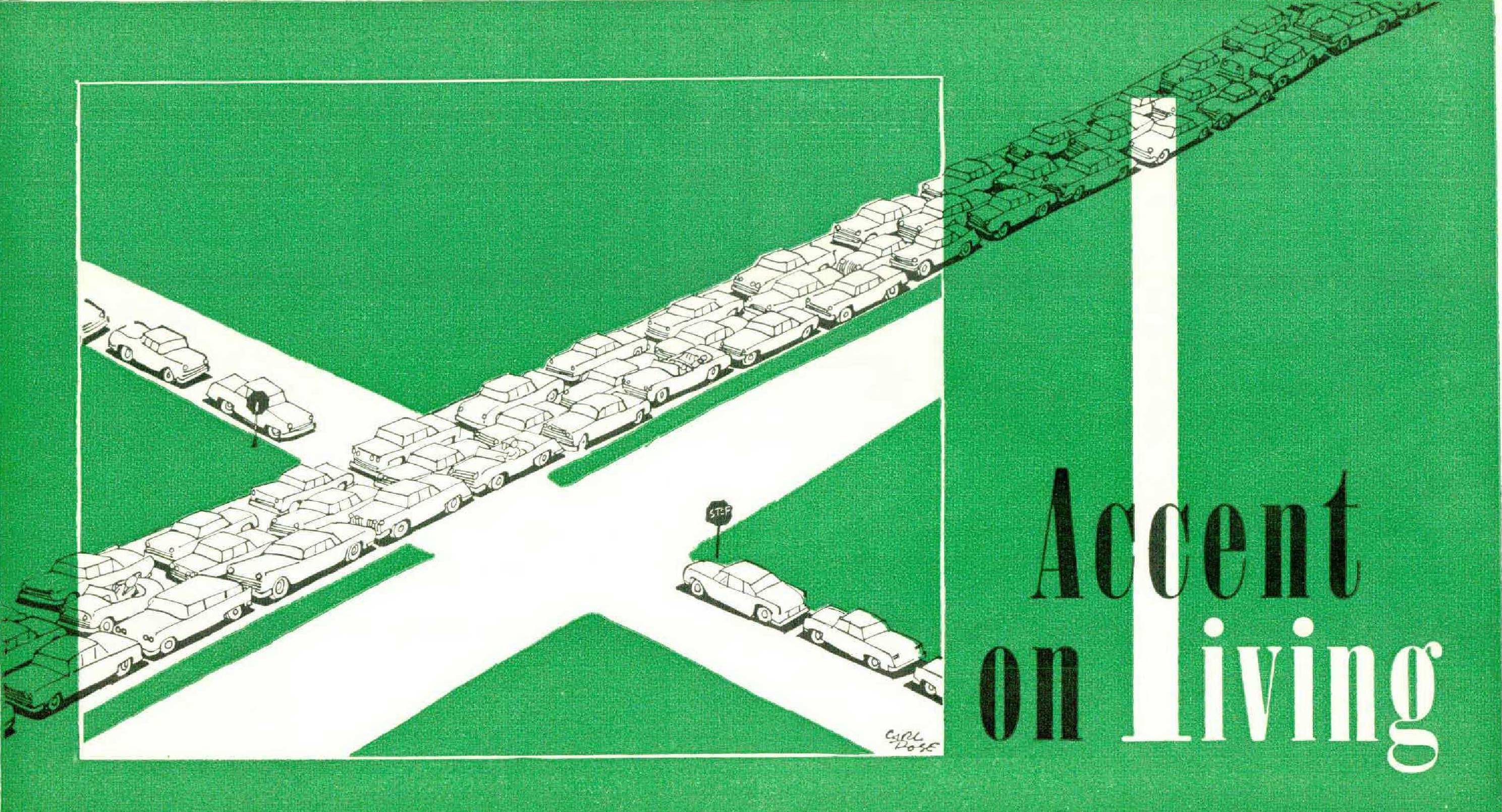 Our host is a resourceful man. “Let me show you how this can be done,” he said. He turned his car around, branched off on a small road, and came back to the big road once again at a point three or four miles farther away from Tappan Zee. “They won’t let anyone through,” he explained, “but they’ll let me join the parade.” This proved to be so. With polite gestures from both parties, a car slowed sufficiently to let us into the right lane, and by similarly polite exchanges, we eased into the extreme left lane and turned painlessly into the road we had vainly sought to reach only a few minutes earlier.