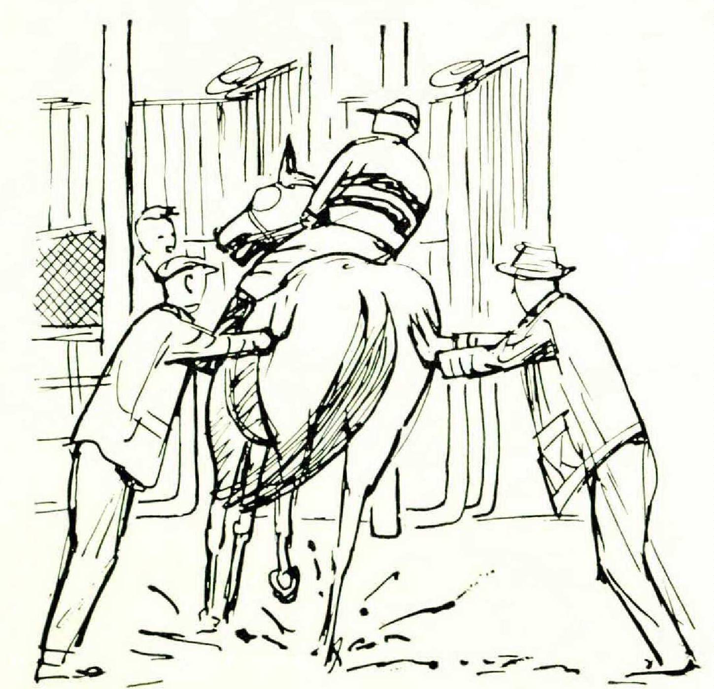 Two weeks passed, and when I inquired about Para, Joe told me she still hadn’t broken. “She’s got a mental block,” he said. A week later the block still hadn’t been lilted. “Lookit,” he pleaded, “you know a lot about horses.” I slipped on some humility. “Suppose you come out with me to watch her work tomorrow morning. Tell me what you think. If he’s training her right.”