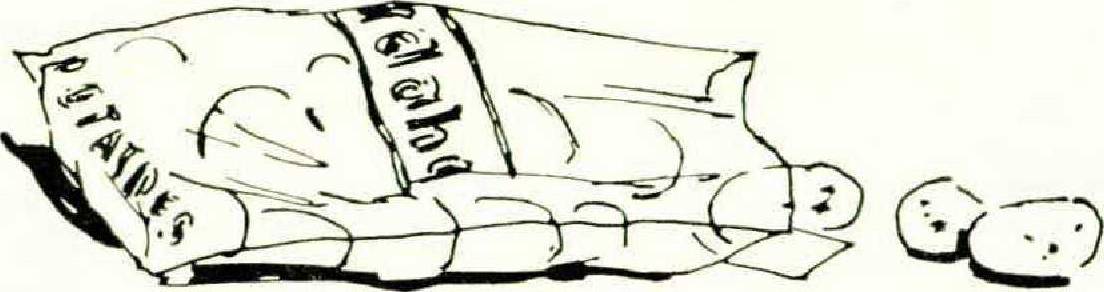 His job was bagging potatoes. Every day after school and all day Saturday he would come into the air-conditioned produce room, put on a blue smock, take a fifty-pound sack of potatoes off a huge stack of sacks, slit open the sack and let the potatoes fall into a shopping cart next to a scale, and proceed to put them into fiveand ten-pound plastic bags. It was very simple; he could do it in his sleep. Then he would spend the rest of the day bagging potatoes and looking out the big window, which separated the produce room from the rest of the store, at the customers. They were mostly white, and after almost a year of this type of work, he began to realize why they did not speak to him in the street. And then he did not mind going to the bathroom, knowing, when he did go, that all of them had to go, just as he did, in the secret places they called home. Some of them had been speaking to him for a long time now, on this business level, and he had formed some small friendships grounded in this.