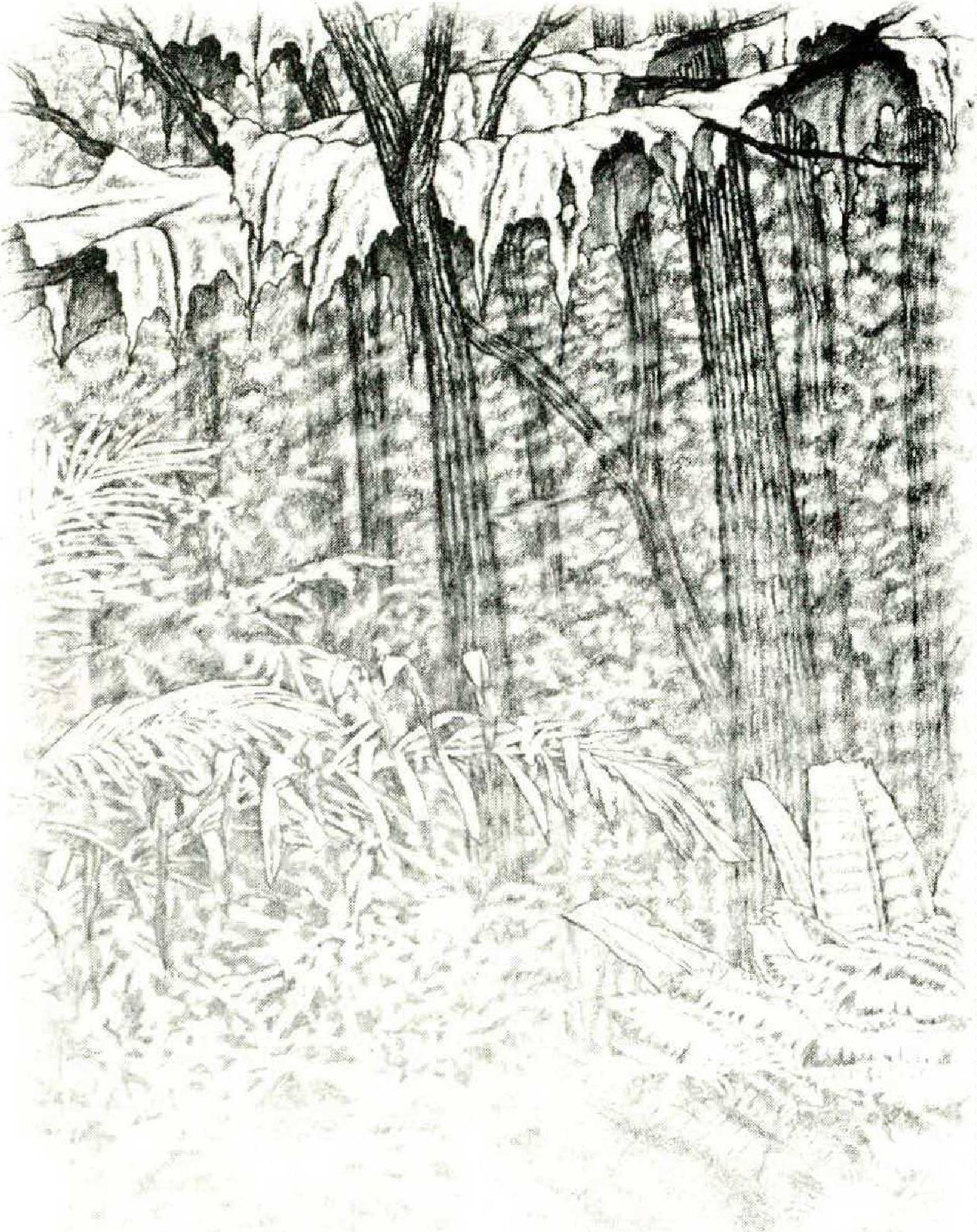 I told Pancho that we could easily fabricate some story, and then when we got home, my father would get him a good job. He laughed at me. One evening, though, I caught him gazing back at the hills and forests we had crossed. It was a week or maybe a month later, in a forest, in the gloom of giant trees, when sharp-eyed Pancho found disguises. High up in the vines, spots of bright orange, ragged parachutes. Pancho could climb like a monkey. The bodies came down. They were what was left of two of our country’s fallen aviators, one a major, the other a young lieutenant just about my size. Pancho gazed at them. “Lifers,” he said softly. “I bet you lifers puked on a lot of EM scum.” He gave his mirthless laugh, but at least he let me wrap them in their parachutes and put them underground. 1 washed the stolen uniforms in a river beside an old stone bridge, left there by the French, I think.