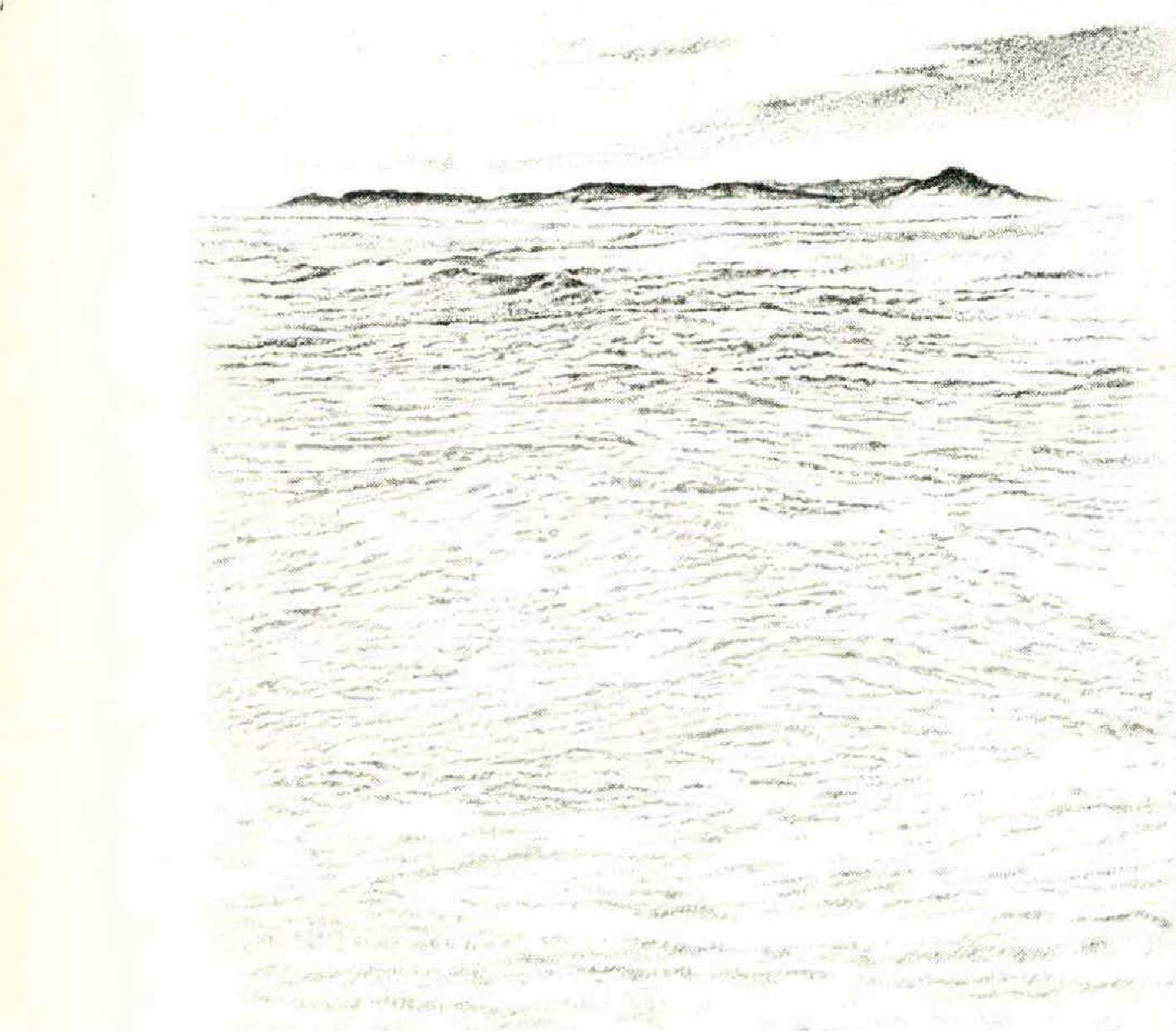 “Come back for a minute,” the captain called to us across the water. “I want you to take this letter to my wife.” He waved a small white object. Other voices cried to us. The profiles stood at the edge of the turquoise water, waving envelopes, calling out messages.