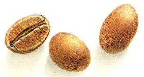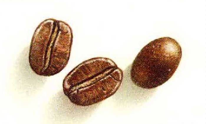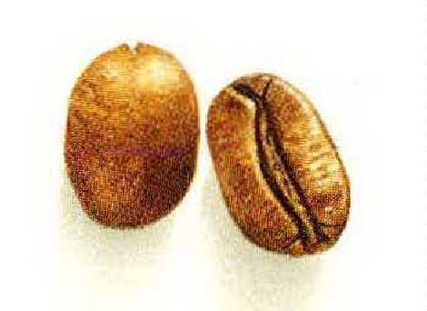 The cherry I was eating was from the species that specialty merchants prefer, Coffea arabica. Arabica grows at high altitudes in semitropical climates, and thrives on the warm days and cool nights there, which slowly develop its flavor; the bean is dense and hard. The coffee we have grown used to. however, is Coffea robusta, named not for its body, which is considerable, but for its resistance to insects and plant disease. Robusta grows at lower altitudes, flourishes in a tropical climate, and bears fruit faster; the bean is softer. Robusta was discovered, growing wild in Africa, only at the end of the nineteenth century (arabica was first cultivated, in eastern Africa and the Arabian peninsula, in the fifteenth century), and because of its hardiness was soon grown on a large scale. This was an unhappy turn of events for coffee drinkers. Robusta has twice the caffeine of arabica (an average of 2.2 percent versus an average of 1.1 percent). Although it has a gratifying mouth-coating quality, its strong, grassy flavor quickly becomes unpleasant unless used with extreme discretion to lend body to the many arabicas that can benefit from it. Big coffee companies, however, reverse the desirable ratio by buying mostly robusta, which is much cheaper than arabica, and blending it with arabica for taste.