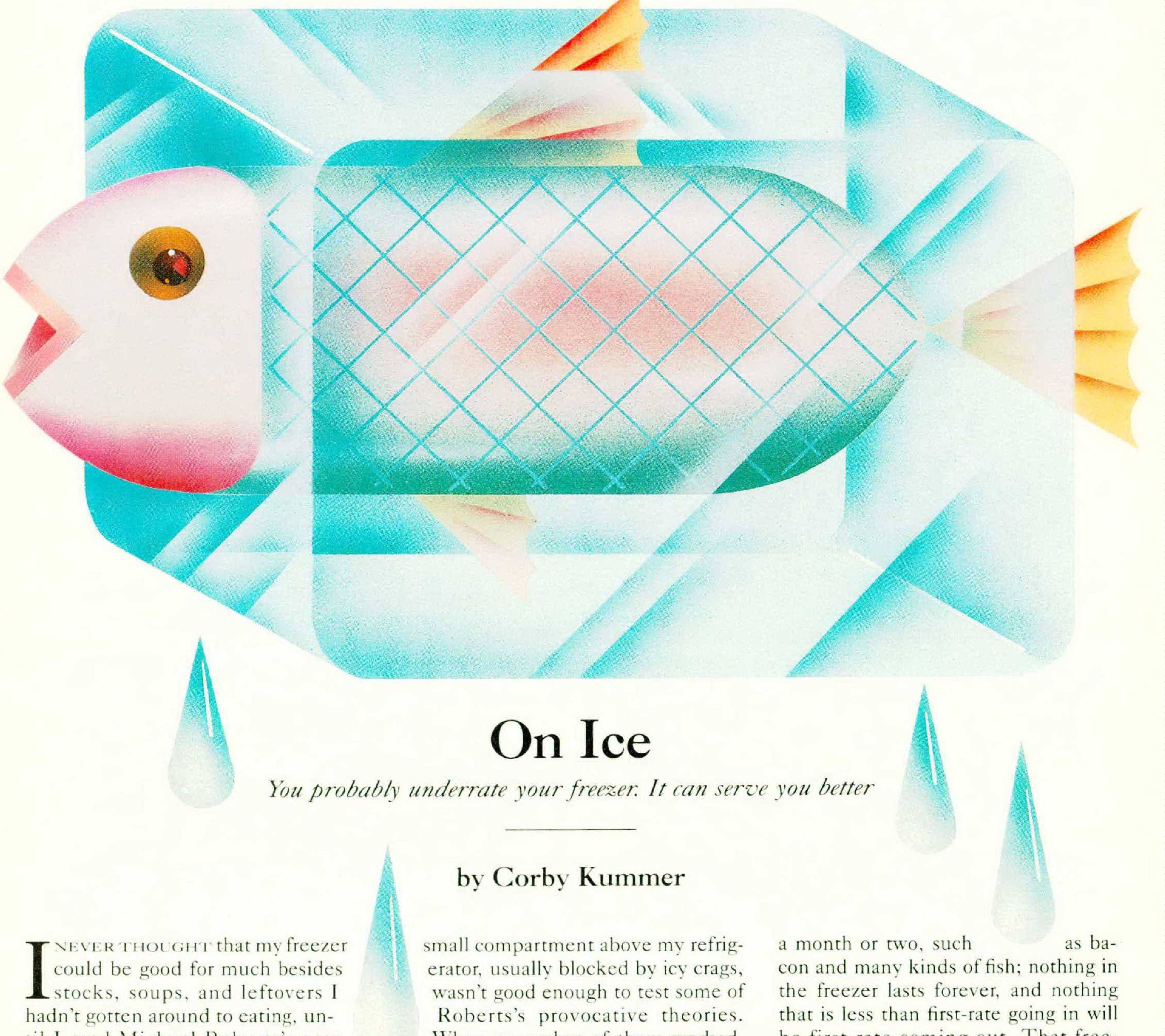 I NEVER THOUGHT that my freezer could be good for much besides stocks, soups, and leftovers I hadn’t gotten around to eating, until I read Michael Roberts’s new Fresh From the Freezer. Roberts is one of the very few original thinkers writing about food, and a terrific cook, too: as the chef and co-owner of Trump’s, he has managed to keep a Los Angeles restaurant popular for ten sears, which is quite an achievement. I was already an admirer of his Secret Ingredients, a 1988 book both wild and lucid in its suggestions of food combinations like lobster and vanilla, and grilled turkey with a burnt peanut butter marinade. After reading the new book, I went out and bought a freezer, realizing that the