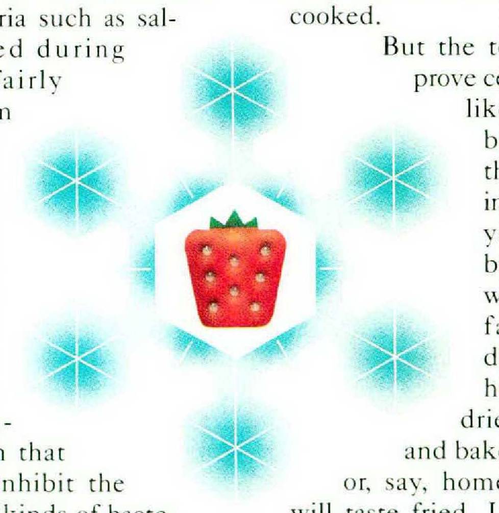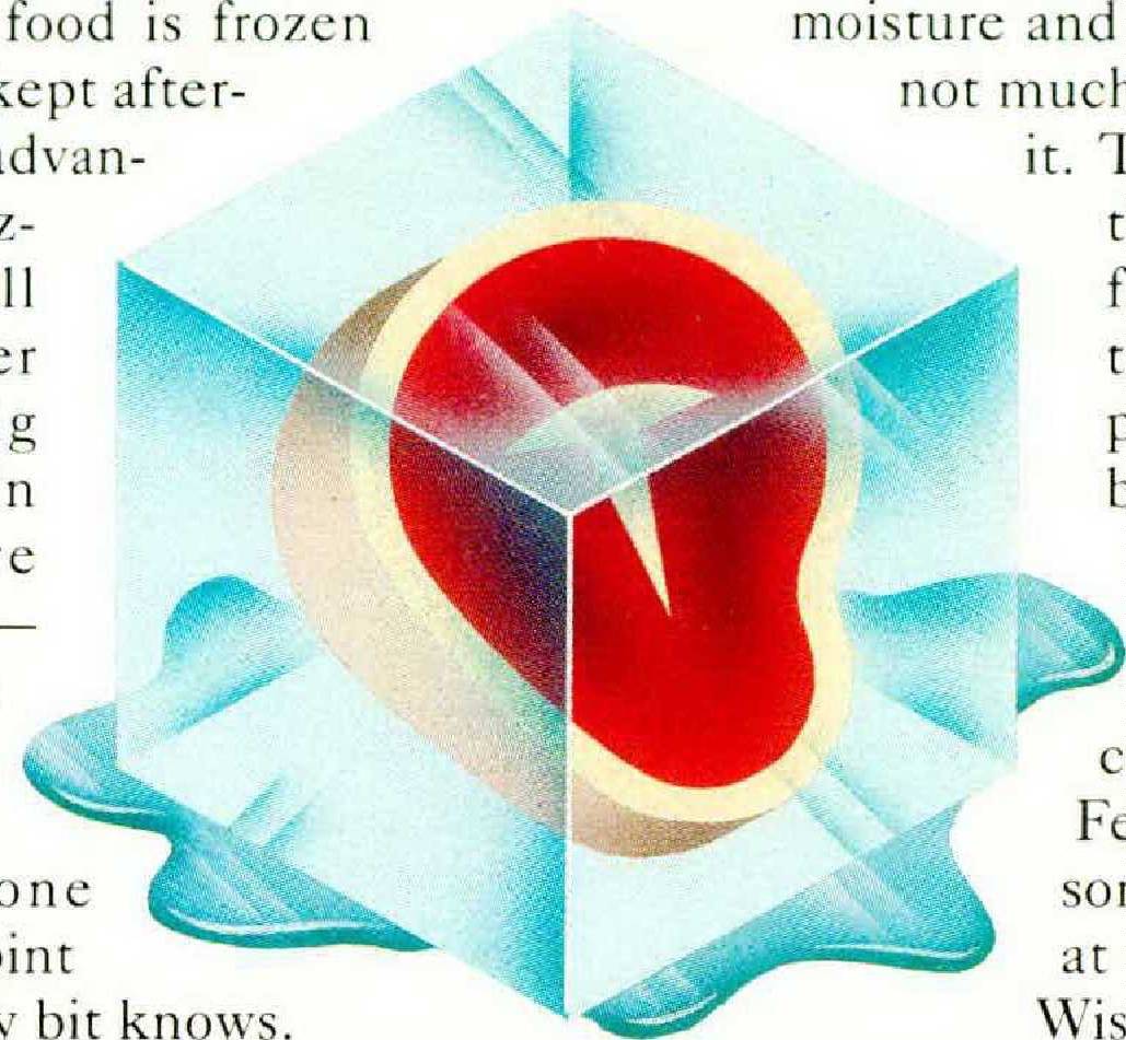 Fruits and vegetables, too, pose challenges. Some of their enzymes break down fats or catalyze oxidation of fats in their cell walls, causing off flavors. Certain vegetables, strange as it sounds, are better bought frozen than fresh: the sugar in peas and corn converts to starch in hours, and processors are able to cook and freeze them before the conversion—which you can’t do unless you have a garden. And other commercially frozen vegetables may soon improve, according to David Reid, a professor of food science and technology at the University of California at Davis. All the vegetables in the frozen-food case have been blanched (boiled briefly) to inactivate enzymes. Researchers at Davis have pinpointed which enzymes cause problems in which vegetables, and are developing enzyme-inactivation tests that could shorten blanching times for string beans, broccoli, and cauliflower, among others. Since the effects of cooking on flavor and texture are much more pronounced before freezing than after, this could result in better vegetables from the frozen-food case.